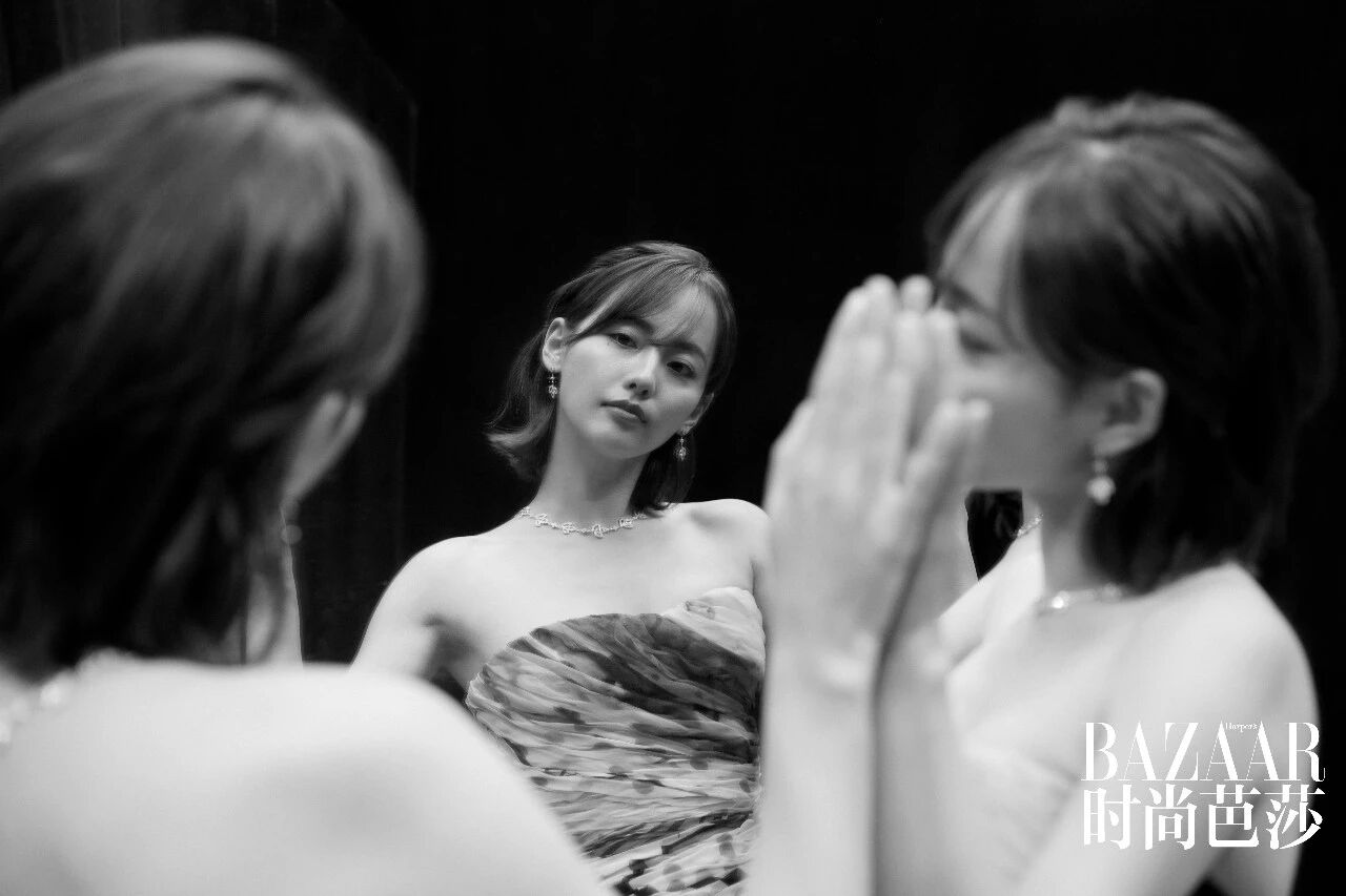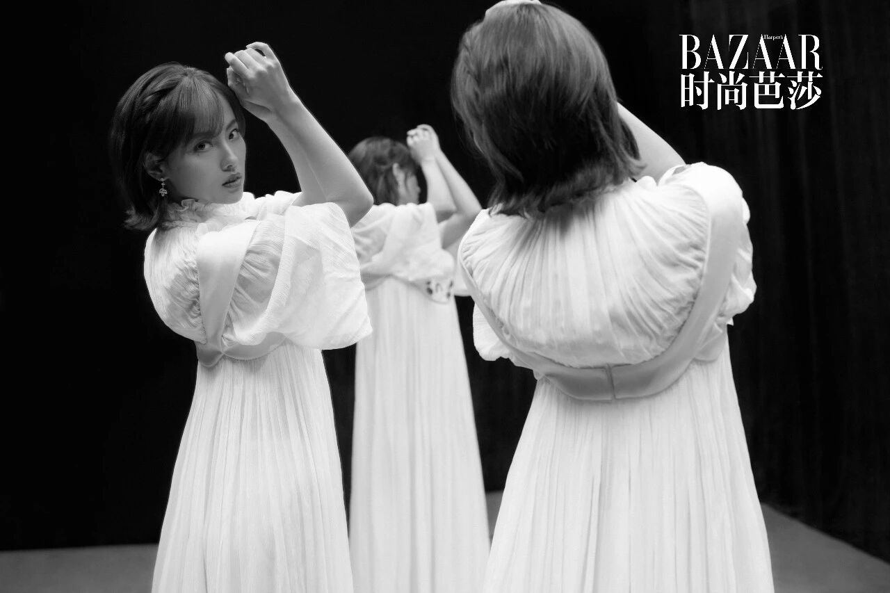 这种美在嘉倪身上尤其突出。她是个性格温婉的成都女孩,又拥有坚信苦尽甘来的韧性。芭莎拍摄头一天,张嘉倪食物中毒去看急诊,当所有人都担心她的健康并以为拍摄会取消的时候,她第二天还是出现在了拍摄现场。柔软,却负责。