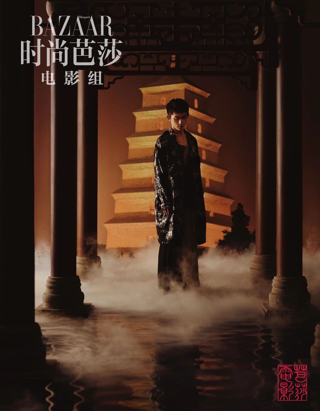 而早在4个月前,《时尚芭莎》电影组就与李必的扮演者易烊千玺创作了一套国风电子刊。
