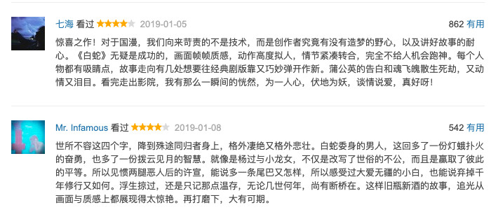 “对于国漫,我们向来苛责的不是技术,而是创作者究竟有没有造梦的野心,以及讲好故事的耐心。”一位观众在国漫电影《白蛇:缘起》下这样写到。