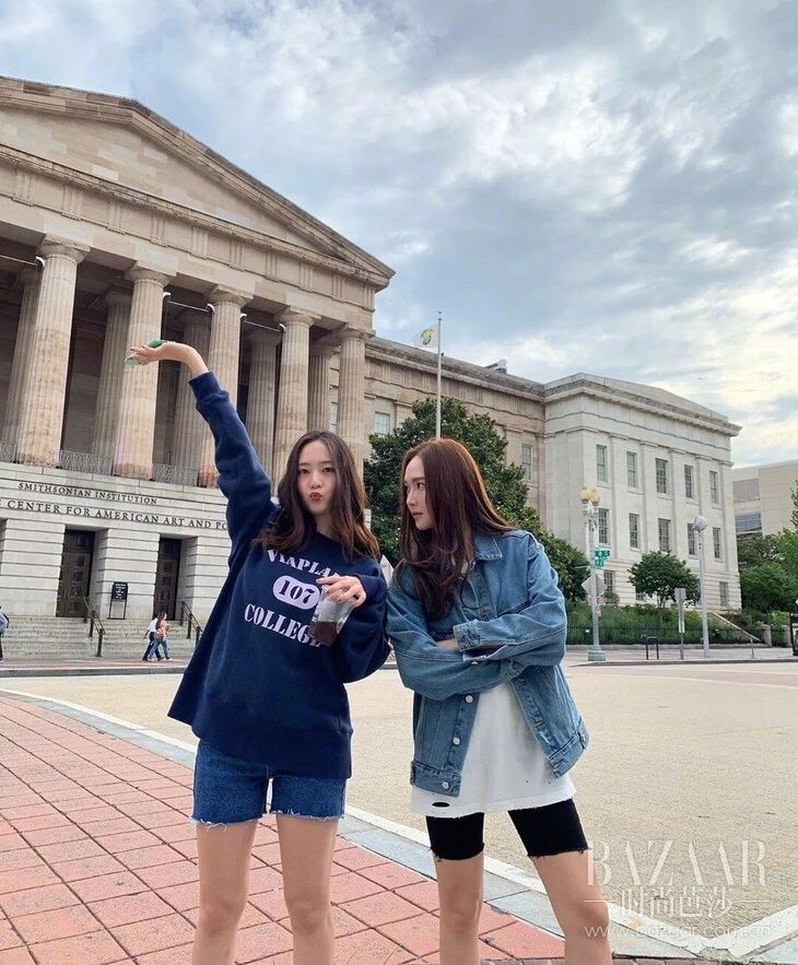 两人同样选择短裤上面搭配蓝色系卫衣或者夹克,头发随意散开,轻松舒适回归到大众视线里的她们,还是依旧能引发无数女孩儿的追捧,怀念她们的闪光岁月。