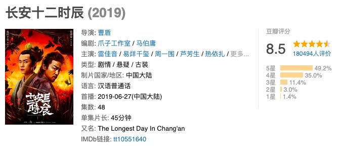 剧集已经播到了后半程,豆瓣评分依然维持在8.5的高分档,而且评价人数已经超18万