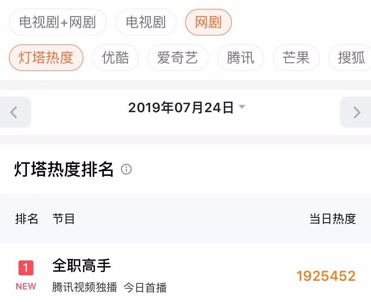 芭姐没想到,杨洋也加入了豪华暑假档阵营,《全职高手》播出当日热度就冲上了网剧第一,这个成绩一直保持了5天。