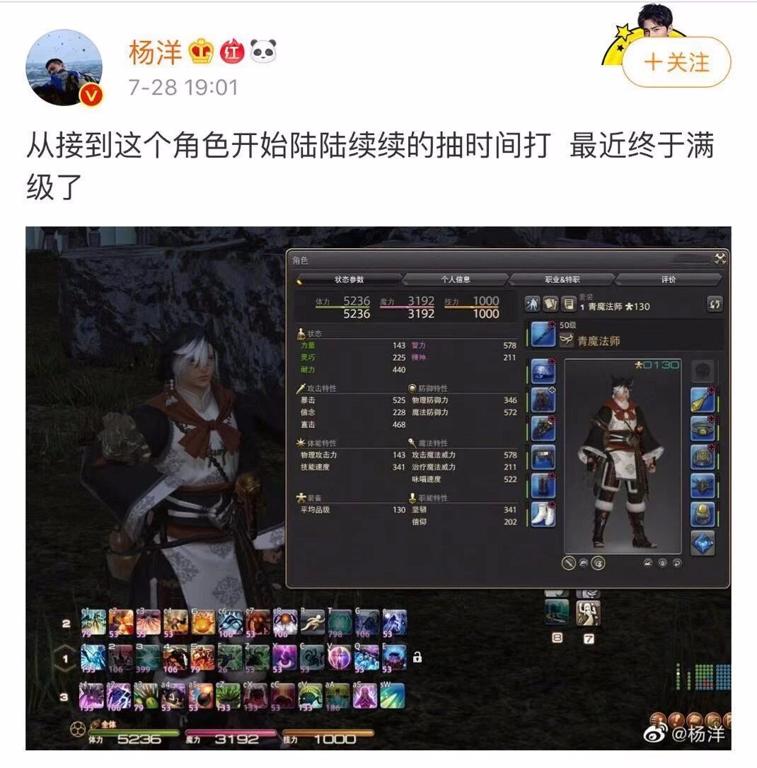 为了功课,杨洋也在微博晒出自己满级的截图。