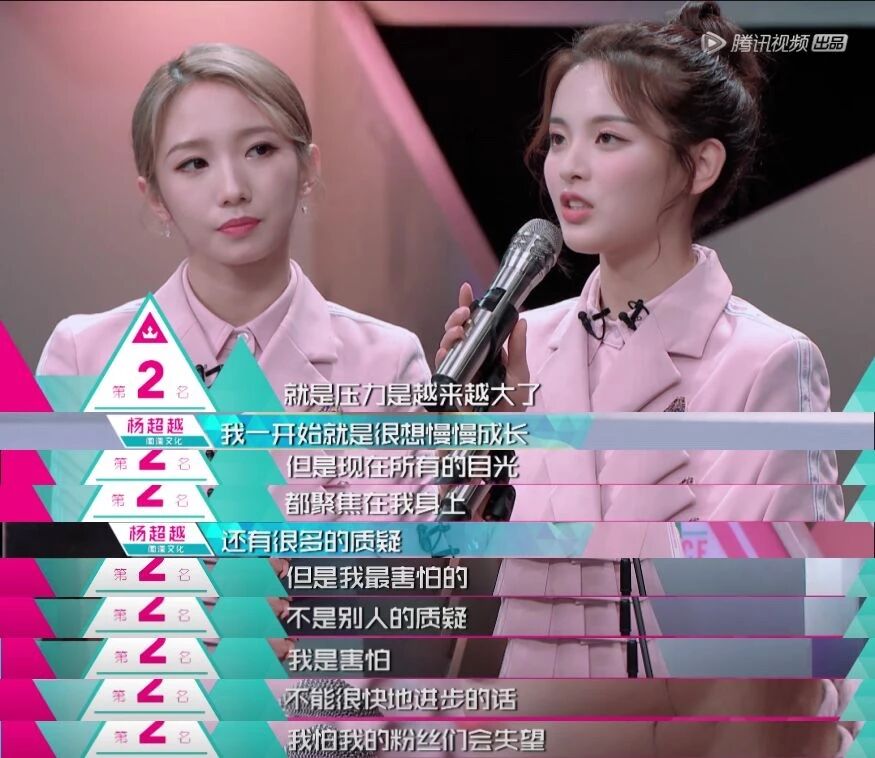 但作为一个初出茅庐的新人,杨超越她并没有见过这样的阵仗,实力跟不上如此密集紧张又高压力的训练和成果考察,让她一次次在舞台PK上翻船