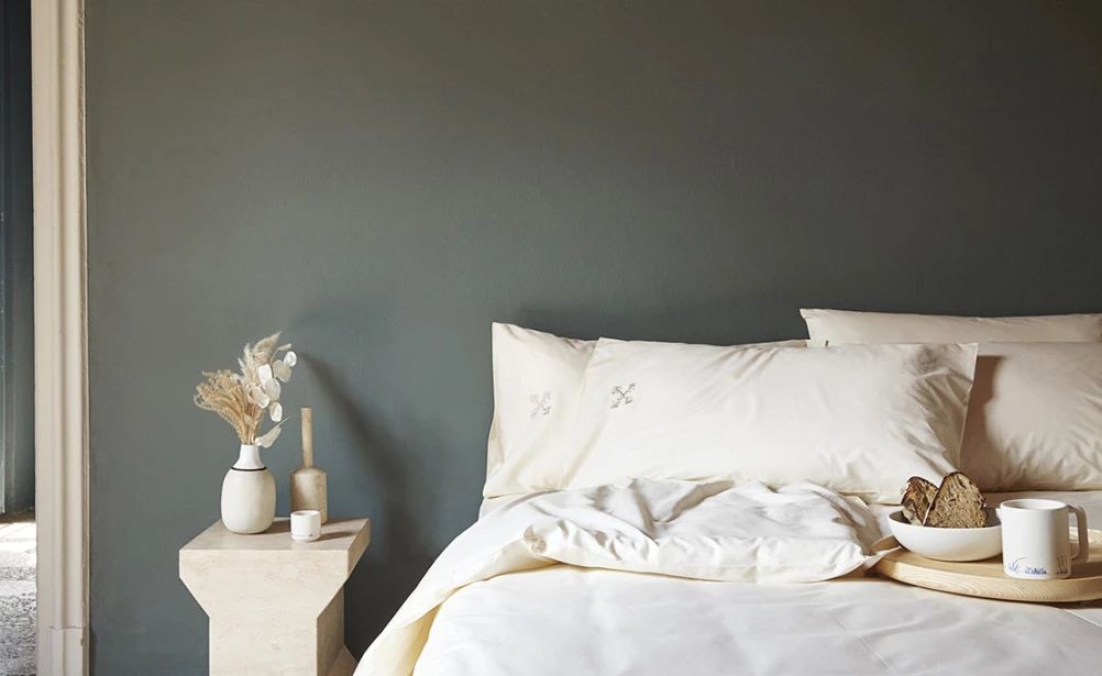 BED 顾名思义就是床上用品,象牙色双人床套装,和罂粟红色流苏针织毯子,都使用了品牌标志性的箭头图案。