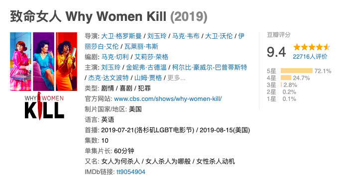 “Why Women Kill?”又名《致命女人》,从片名就知道这是一部女人戏。