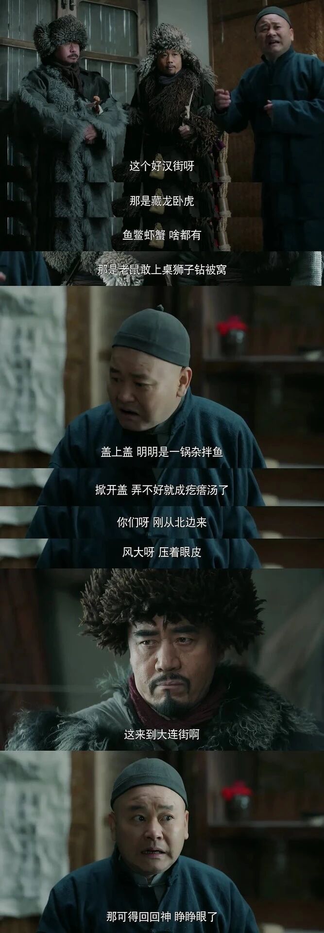 陈怀海(陈宝国饰)带领着一群闯过关东的大老爷们,淘完金后来到了大连,落脚到了好汉街。