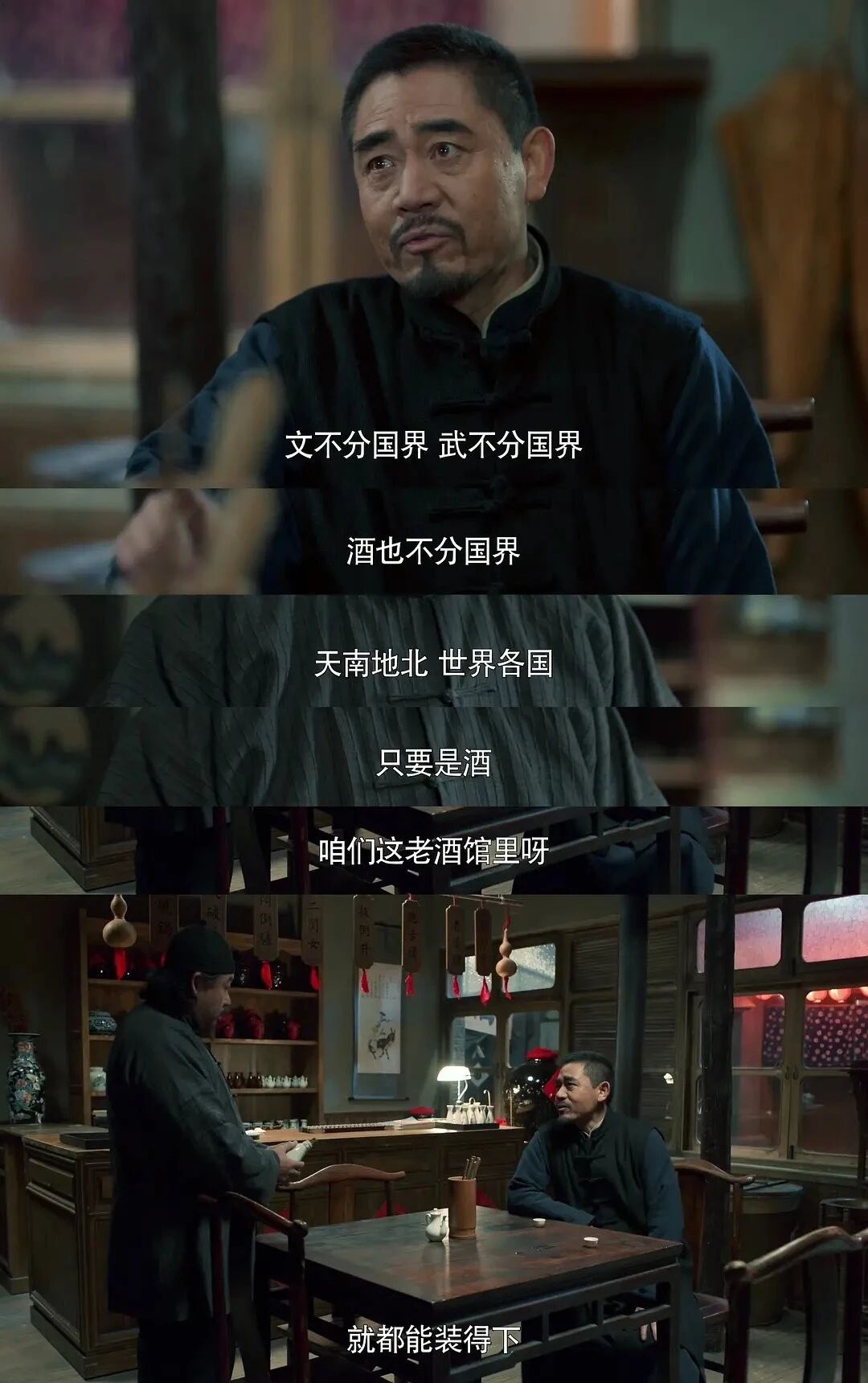 陈怀海在酒馆里谋生计、释大义。而这卧虎藏龙的人情百态,可不就是最真实人生。