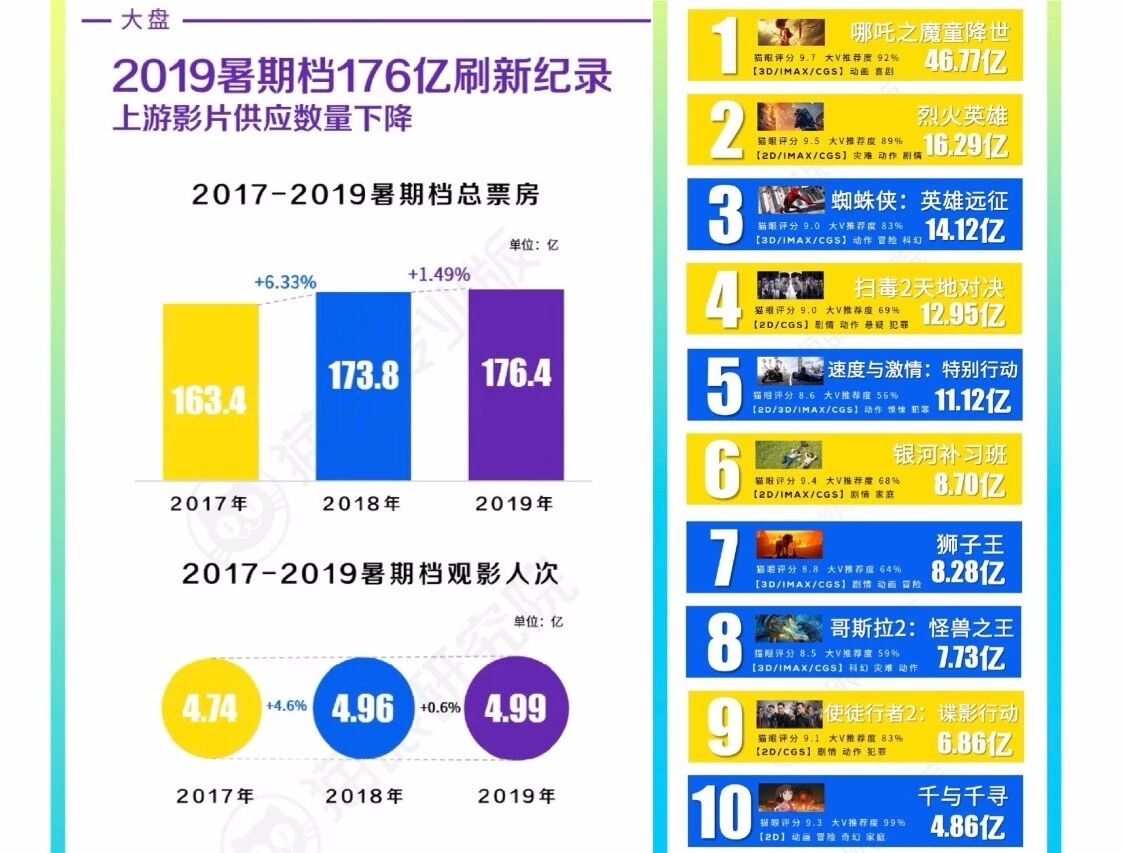 暑期爆款小哪吒独占79个热搜轮番霸榜,从电影、动漫出圈到全领域。根据猫眼数据,截止目前,《哪吒之魔童降世》上映至44天,累计综合票房超过47.6亿,荣登中国影视票房第2。