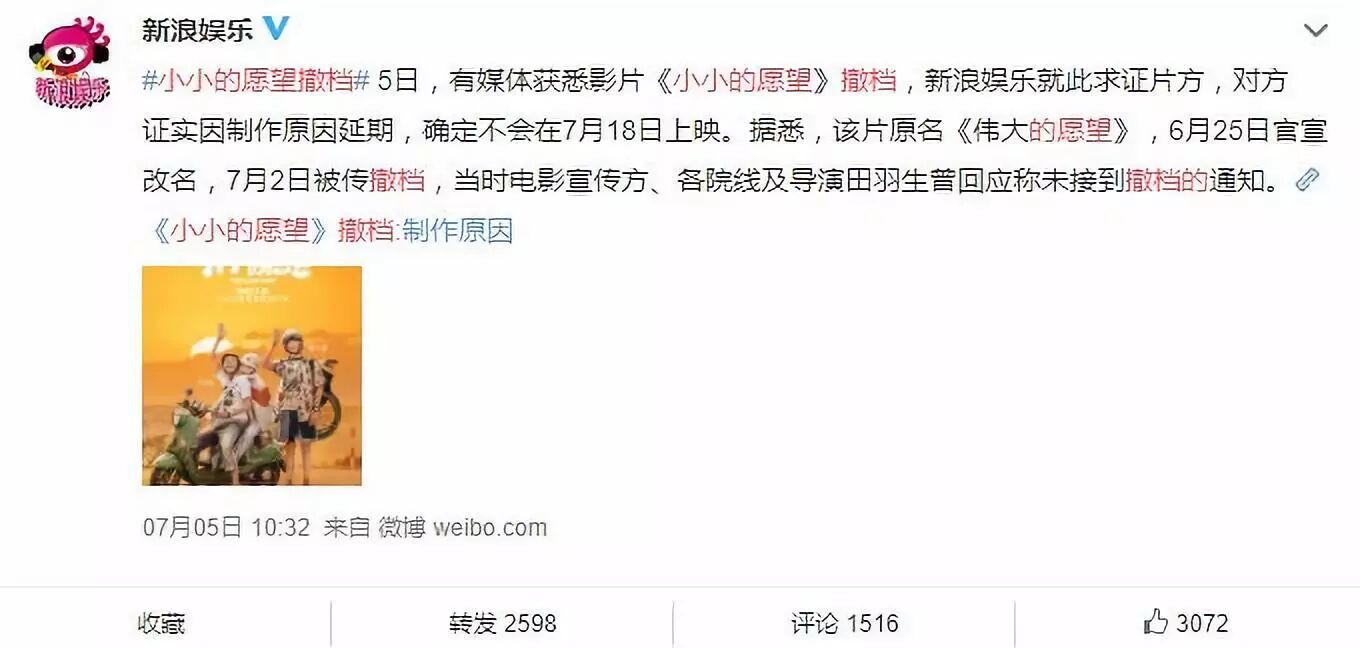 暑期档撤档风波里被大家讨论最多的,就是即将在中秋档杀回来的《小小的愿望》。