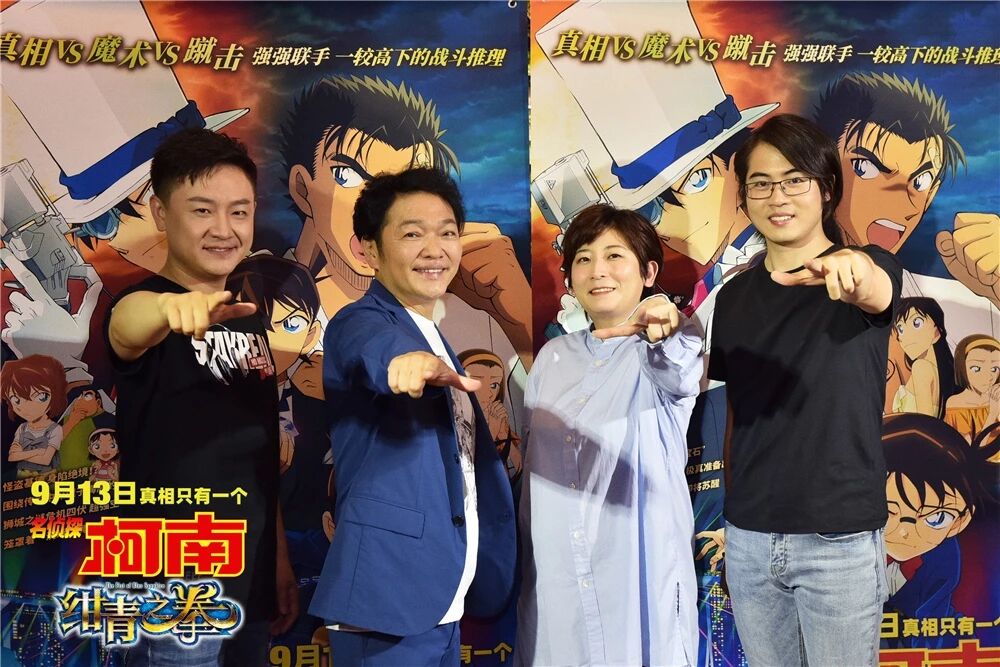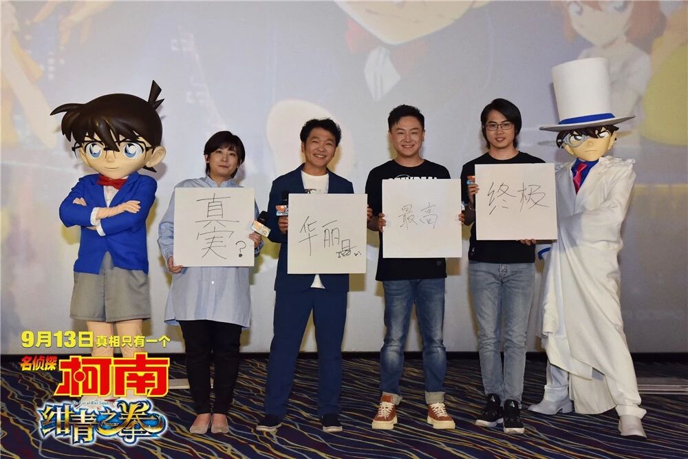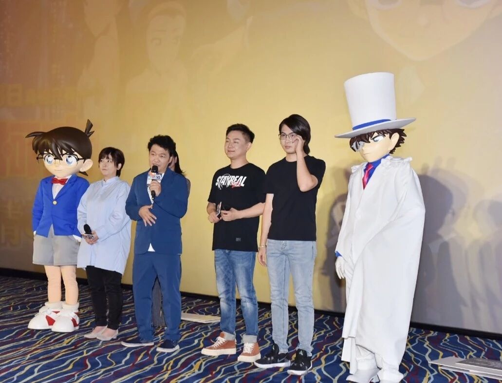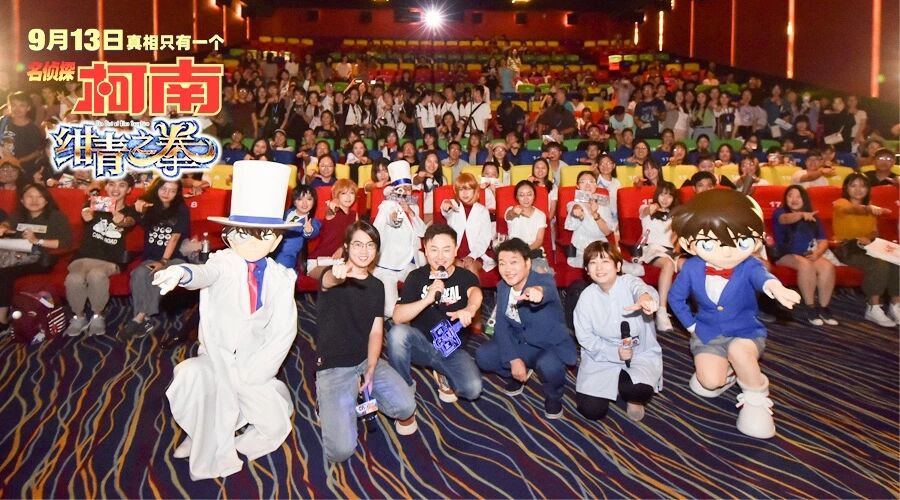 导演永冈智佳、为新一和基德献声的日本配音山口胜平、中文配音阿杰、中文配音导演杨天翔、以及“柯南”和“基德”这对侦探与怪盗的人气组合纷纷空降现场,与影迷和粉丝一起提前观看这部平成年代最后一部柯南电影。