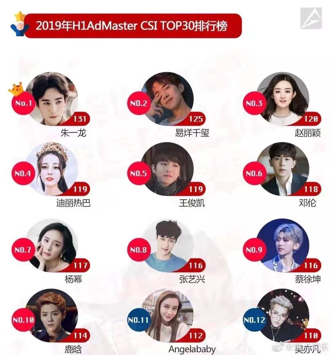明星在H1AdMaster CSI上面的排名,成为了各大品牌选择代言人的标准之一。