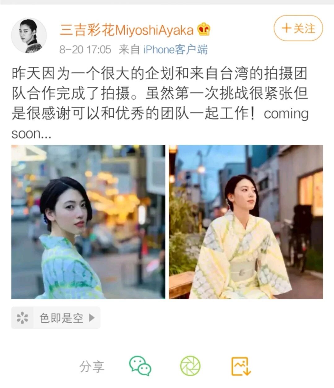 从MV女主角三吉彩花原来早就在微博官宣了拍摄