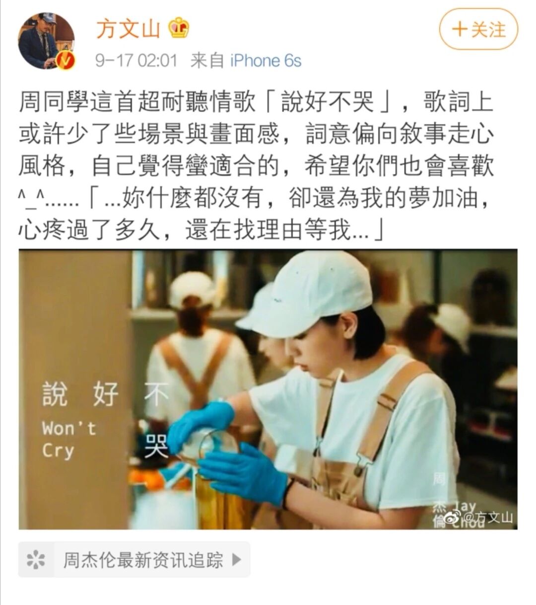 一时间芭姐的朋友圈不分平台、不分圈层的都是一个画风——分享周杰伦新歌《说好不哭》