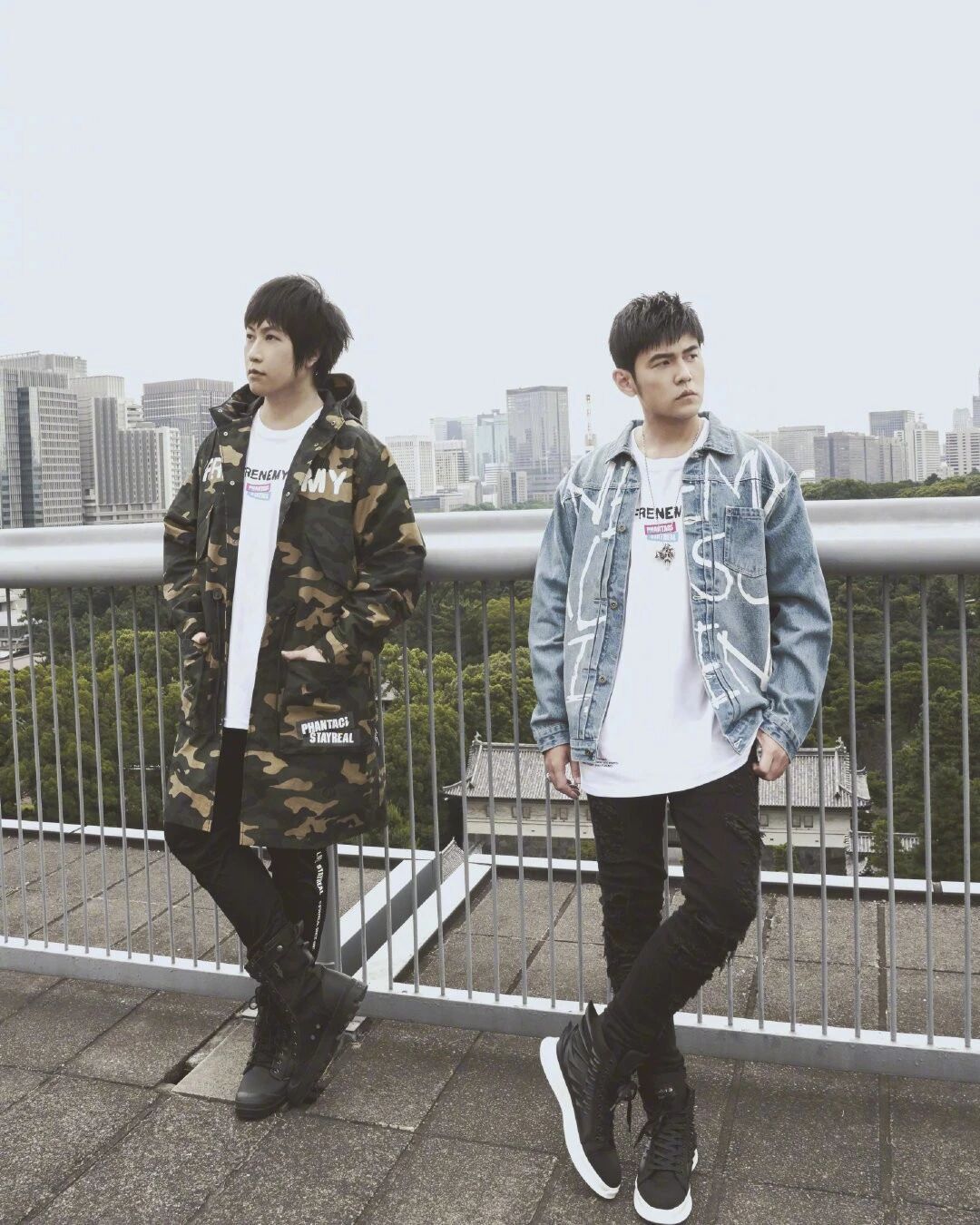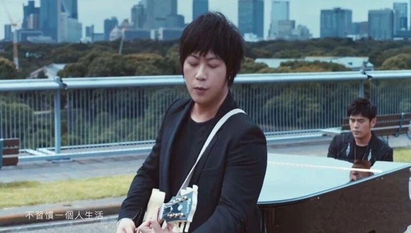 天台上周杰伦弹着钢琴,阿信则弹着怪兽的吉他,这哥俩拍完MV后还顺便去逛了个街。