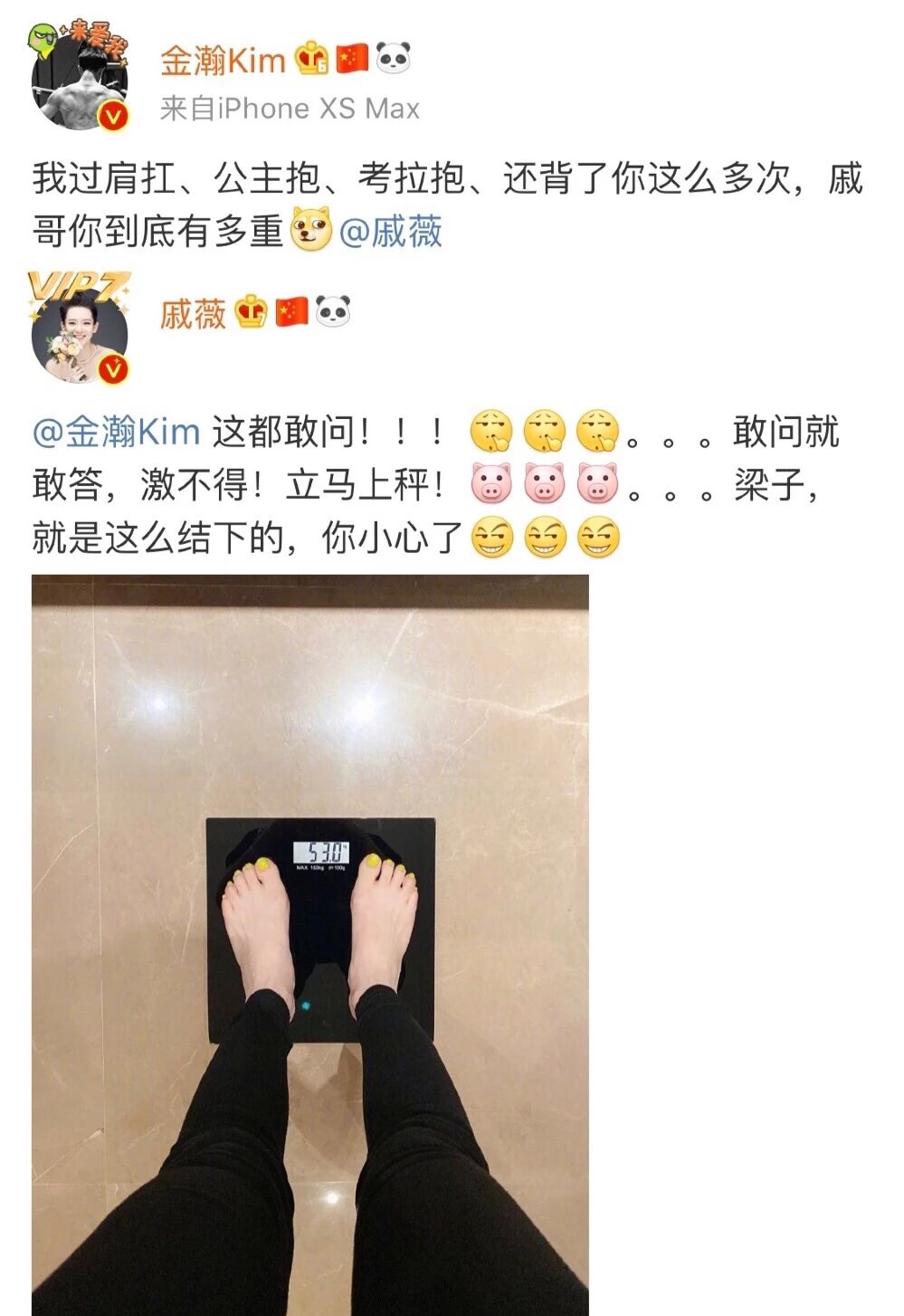 剧播出后,金瀚在微博上灵魂发问戚哥体重,我们real耿直的戚哥也完全没在怕的,霸气在线晒出体重秤,并隔空喊话金瀚,“梁子就是这么结下的,你小心了!”
