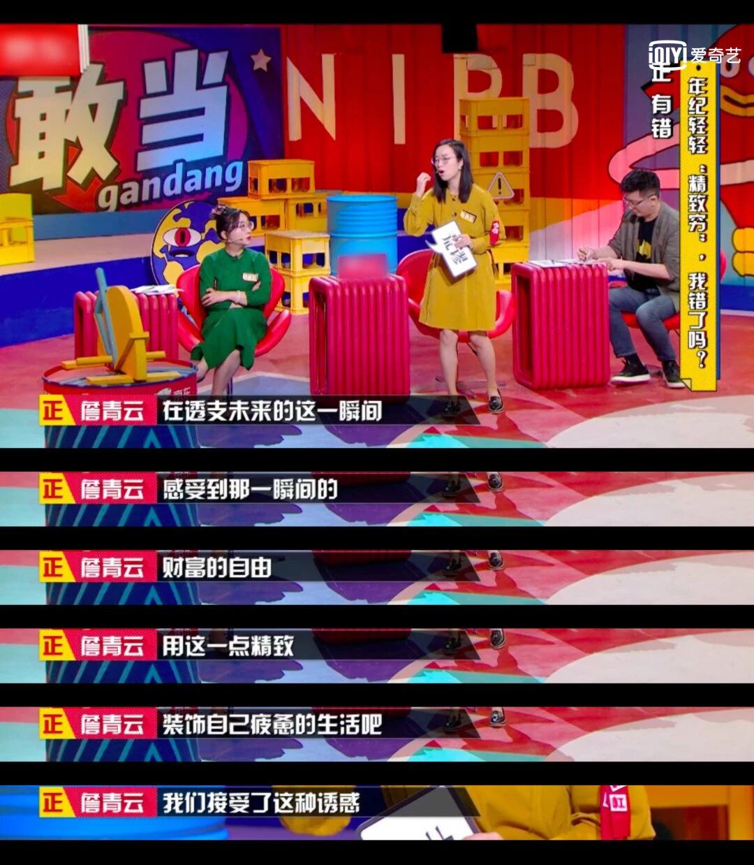 而比辩论本身更耐人寻味的,在于本期辩题本身——“年纪轻轻‘精致穷’,我错了吗?”