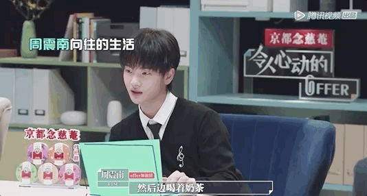 周震南称自己很向往职场生活因为之前在自己公司看到一个姐姐在自己的专属工位上喝着奶茶,摆放着自己喜欢的照片和绿植,还可以蒸脸,觉得十分羡慕!