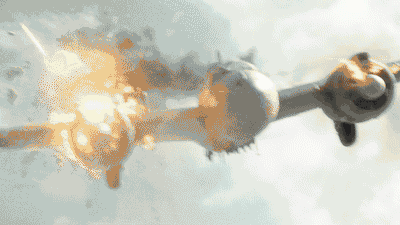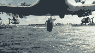 我们跟着无畏飞行员第一视角驾驶战机俯冲而下,穿梭在枪林弹雨中冲到最低处,飞射的炮火点燃军舰像要燃起整片海域。