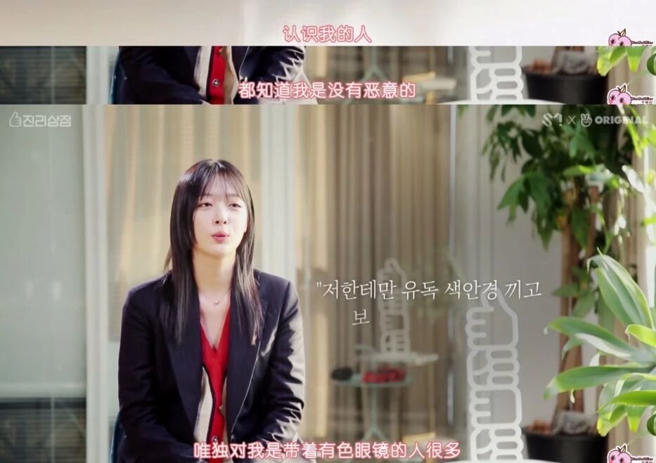 意识到自己的病态之后,雪莉也主动寻求过与大众和解,微笑着营业、精致的接受采访,走上专门回怼恶评的综艺节目,揭开每一层被攻击的伤疤