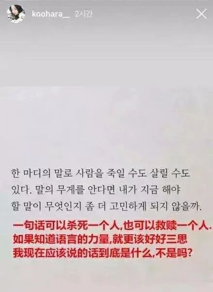“一句话可以杀死一个人,也可以救赎一个人,如果知道语言的力量,就更该好好三思,我现在应该说的话是什么,不是吗?”这句具荷拉5月份发在自己ins上的话,至今也没有任何人在意