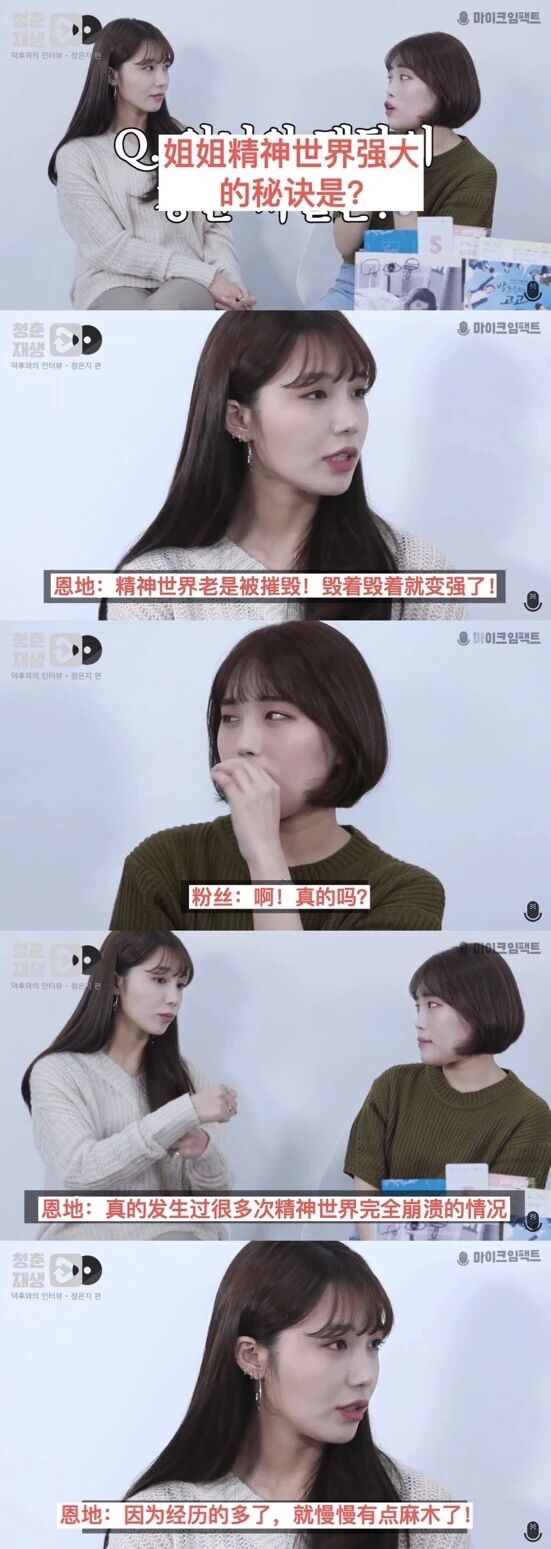 前几天一档韩综的采访里,粉丝问APINK女团郑恩地,精神世界强大的秘诀是什么
