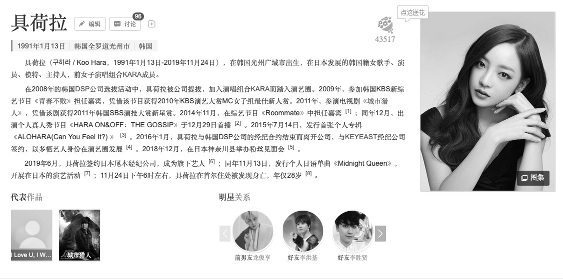具荷拉的突然离世,已经是近两年韩国娱乐圈第3位以“自杀”方式结束自己生命的年轻爱豆。