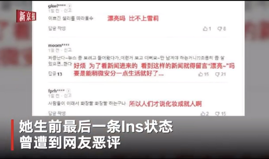 而在昨天去世的新闻下面,甚至还有人发表“钟范(具荷拉前男友)啊,现在把视频发出来,就没人告你了”这种令人发指的言论