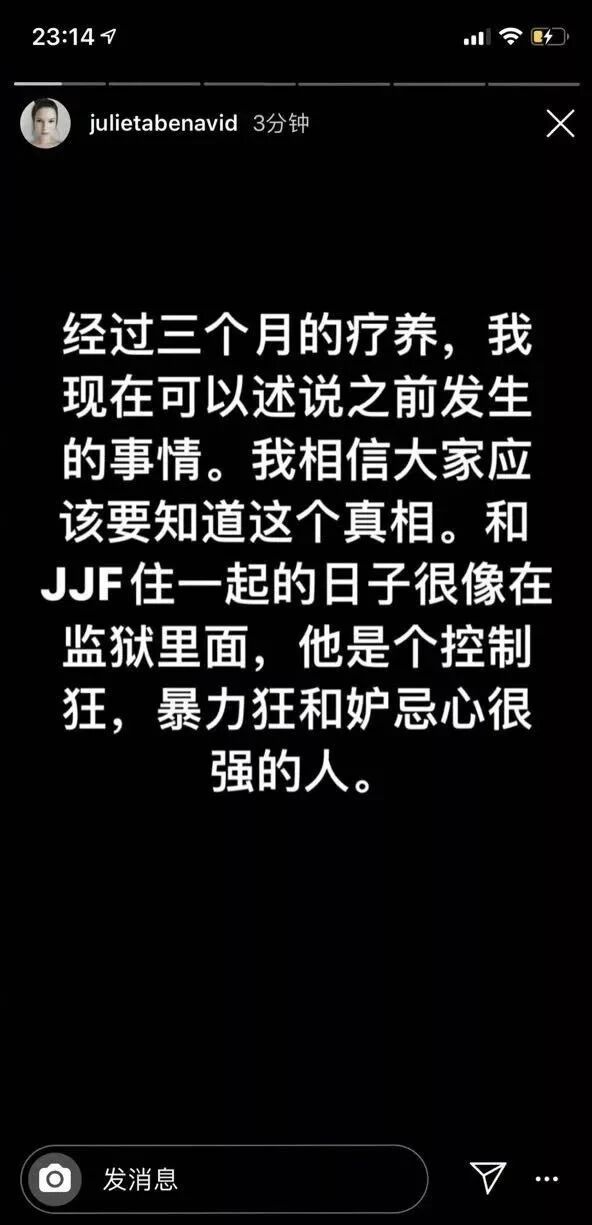 通过文字的语言技巧否认了Julieta发布的家暴言论指责,但也并没有完全否认称其诽谤...
