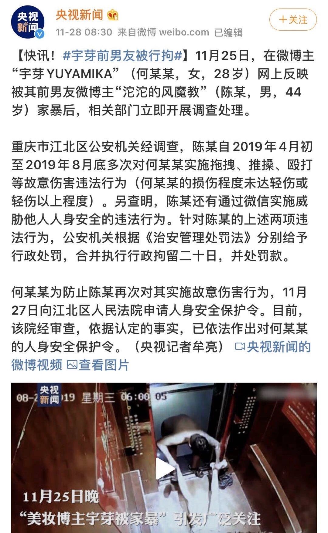 Papi酱旗下博主宇芽在微博上陈述自己被家暴的现状,被对方从精神到肉体上的折磨都完全超出了网友们的认知范围
