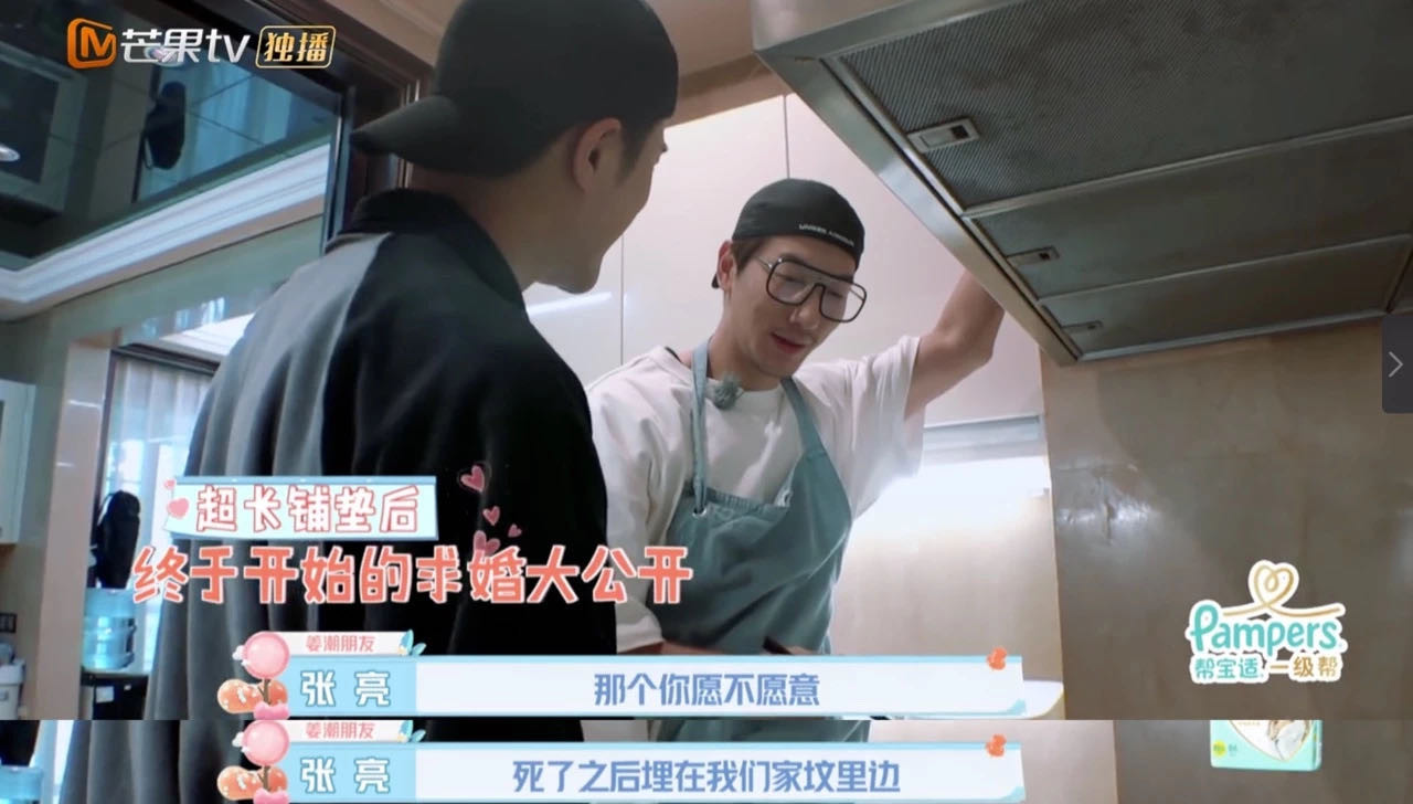 今年8月,张亮还在综艺《新生日记》上自曝当初求婚的趣事,讲自己对寇静的硬核求婚告白是“你愿不愿意死后埋在我家里”