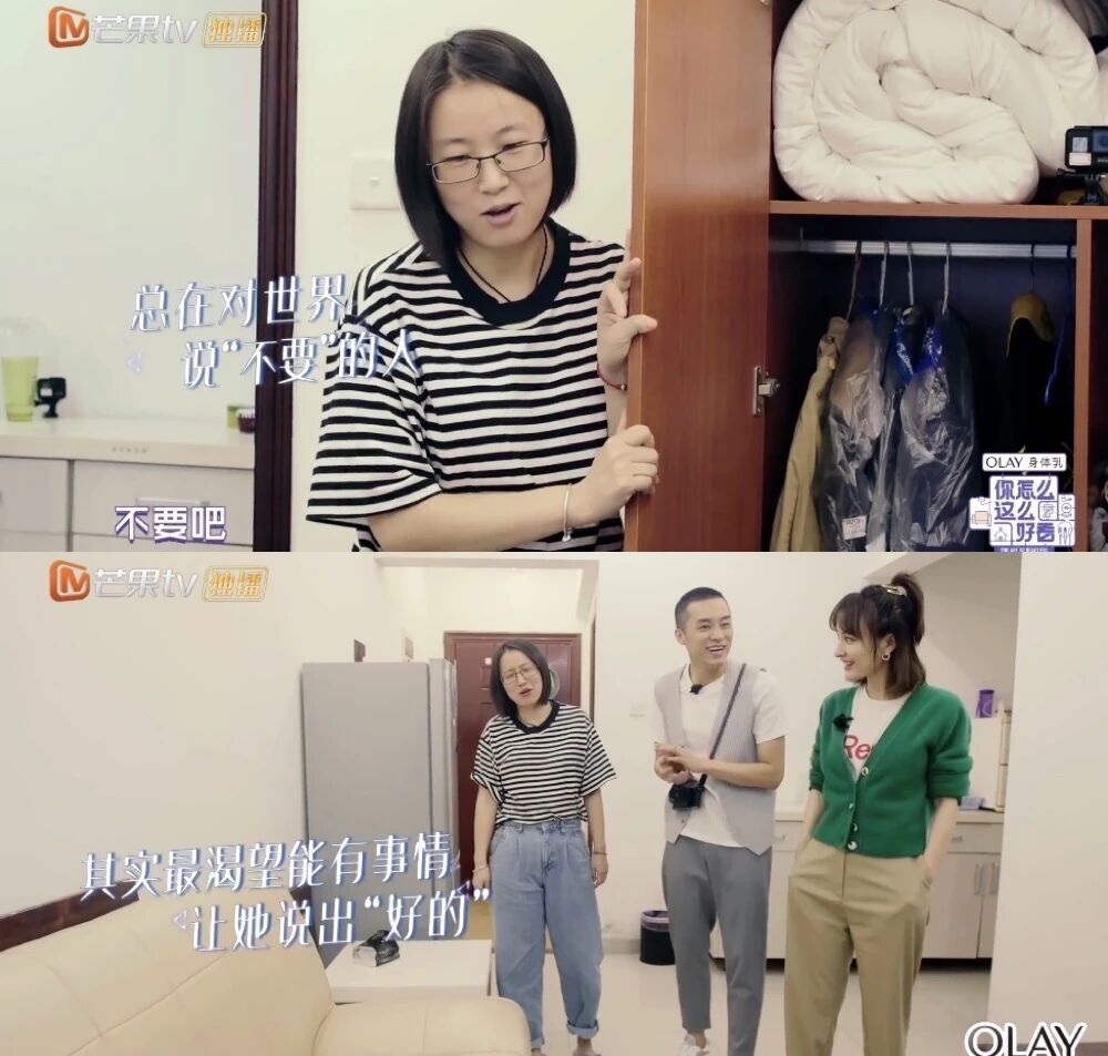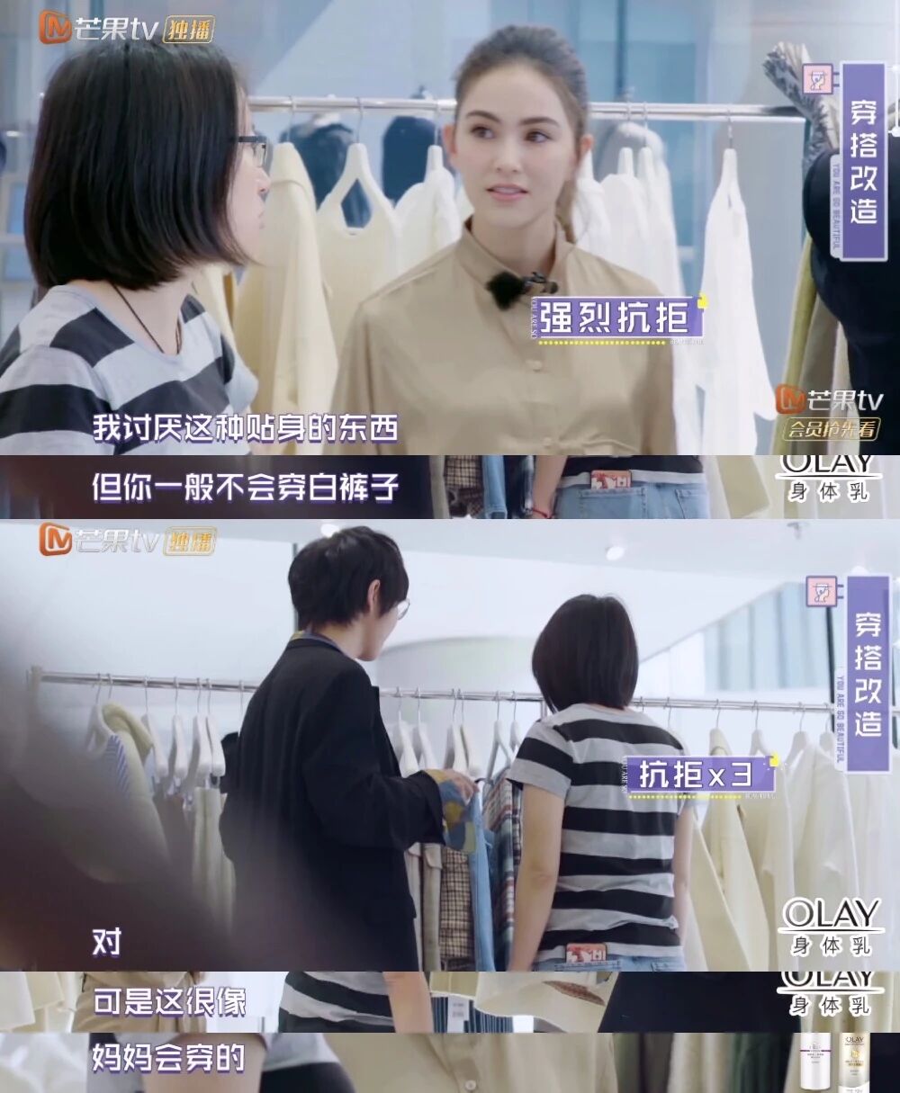 在韩火火帮她进行穿搭改造时,一开始她还是习惯性地发出抗拒四连,“不会穿、不喜欢、像妈妈会穿的”