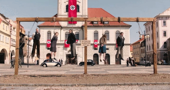 但作为一部二战题材的电影,《少年乔乔的异想世界》也丝毫没有回避杀戮、血腥和残忍。