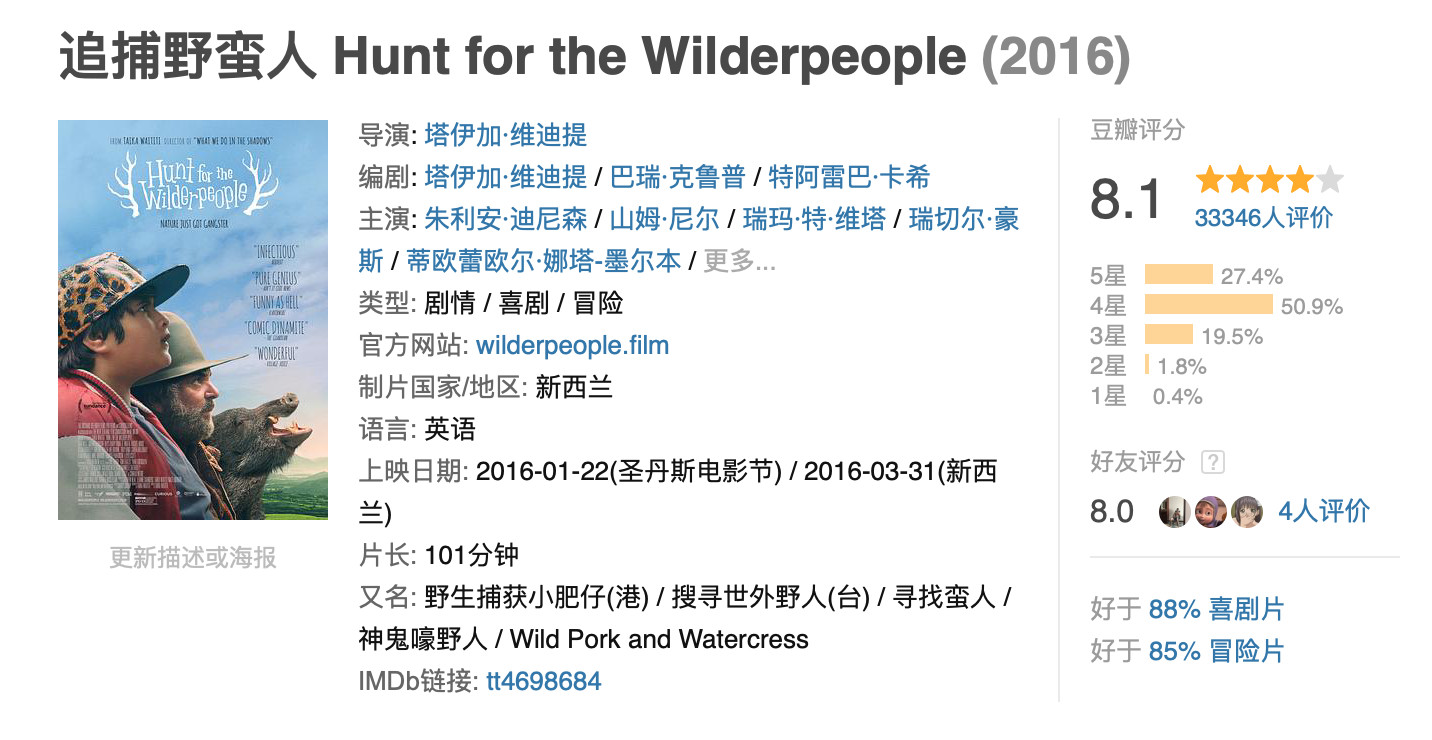 而关于导演塔伊加·维迪提,除了众所周知的《雷神3》,早在2016年,由他执导的儿童片《追捕野蛮人》目前豆瓣评分仍高达8.1。