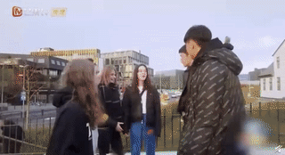 这期综艺《小小的追球》,黄子韬周冬雨王彦霖一行人来到冰岛,在完成任务的途中,黄子韬偶然在街头遇到几位正在浏览自己ins的法国小女孩
