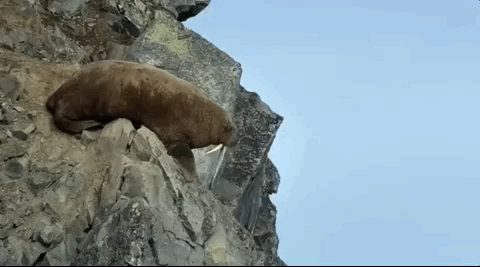 它们甚至违背习性,拖着一吨重的身体,爬上80米高的悬崖,只为了寻找一个可以休息的地方。
