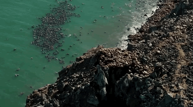 当饥饿时,它们要重新回到海上。然而海象出水后视力极差,于是纪录片里最残忍的一幕出现了…