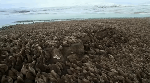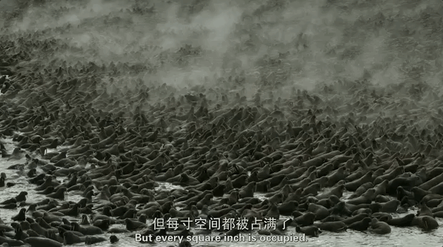十万头海象密密麻麻的布满整片海岸,狭窄、逼仄、拥挤,却别无它法。