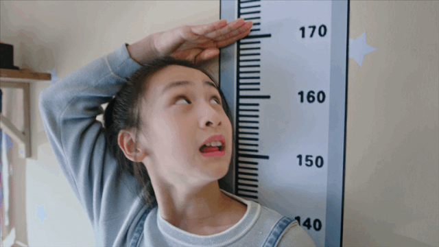 对着身高表量身高,个头已经超过了一米六五,眼瞅着就奔着一米七去了
