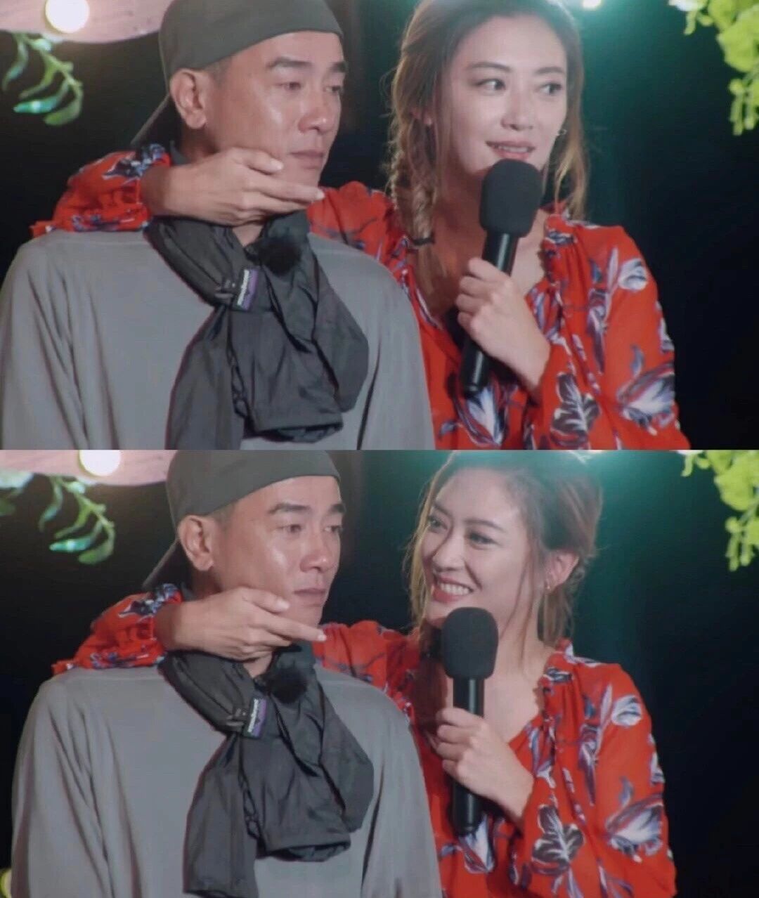 陈小春一边唱着“见尽了风涌云起,还怎么舍得放下你”,一边看着应采儿露出温柔又宠溺的笑,这一段后来也成为大家心中“她在闹,他在笑”的经典名场面。