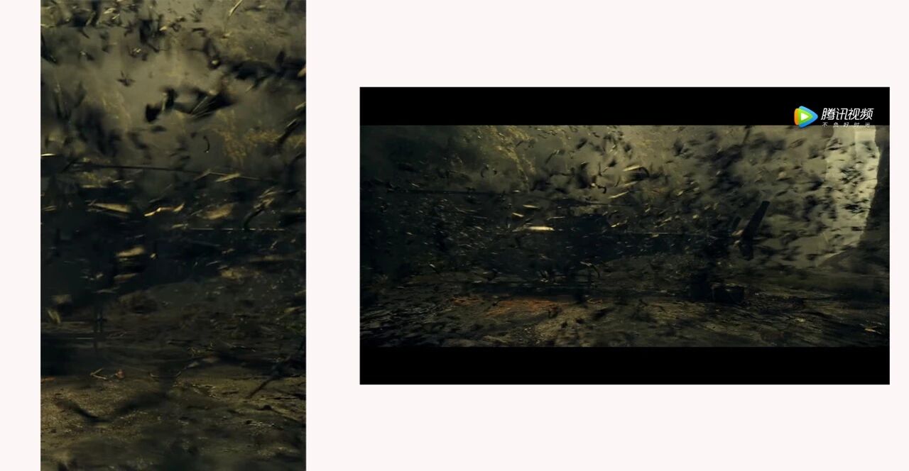 预告片中同样的场景对比横屏与竖屏的呈现效果