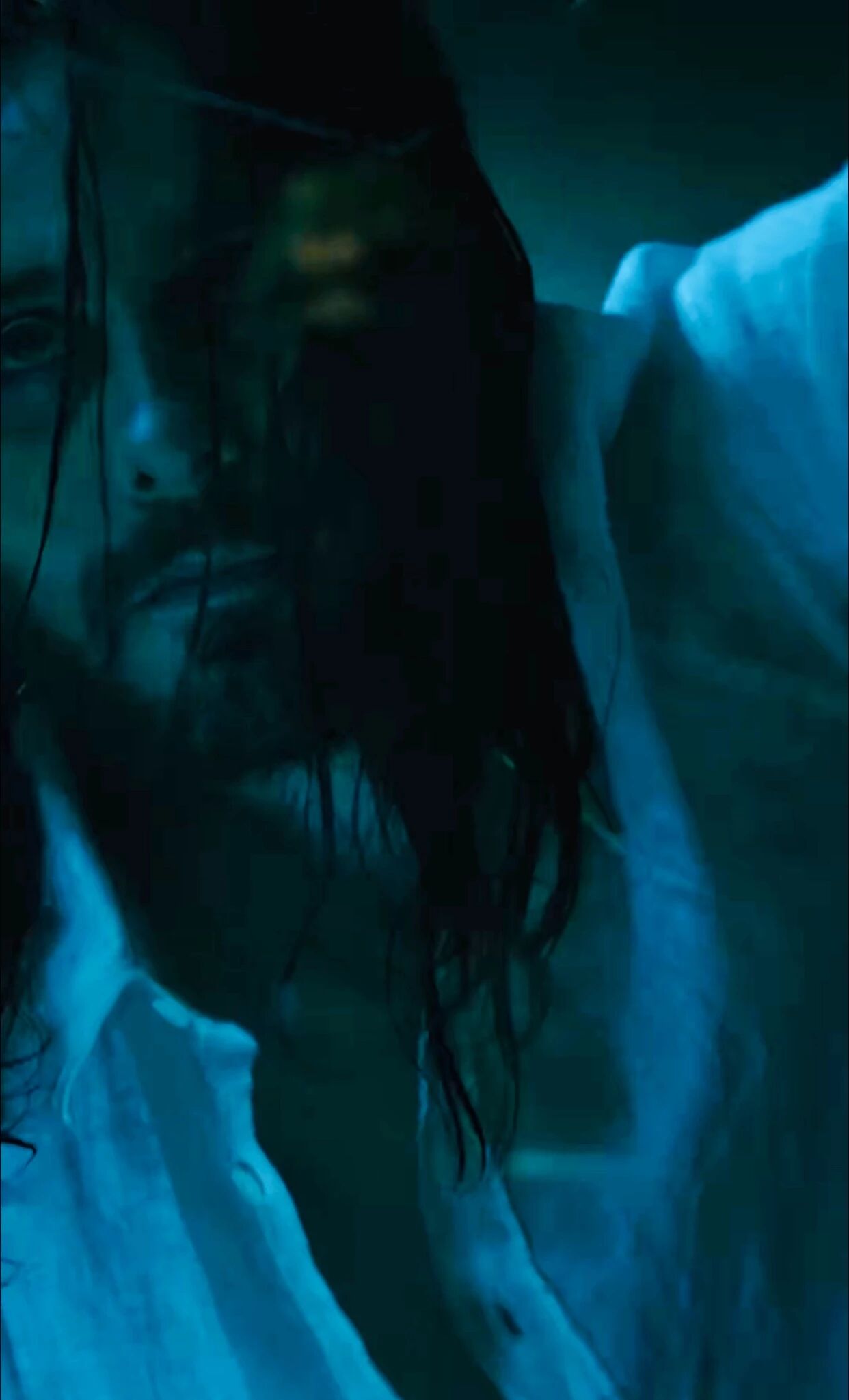 莫比亚斯因为从吸血蝙蝠上提取DNA来治愈自己罕见的血液病,实验的副作用却使得他变成了尖牙出露,惊悚骇人的“伪尼古拉”。可这吸血鬼的脸都好像看得不太清,只能稍微透过光影看出点轮廓。