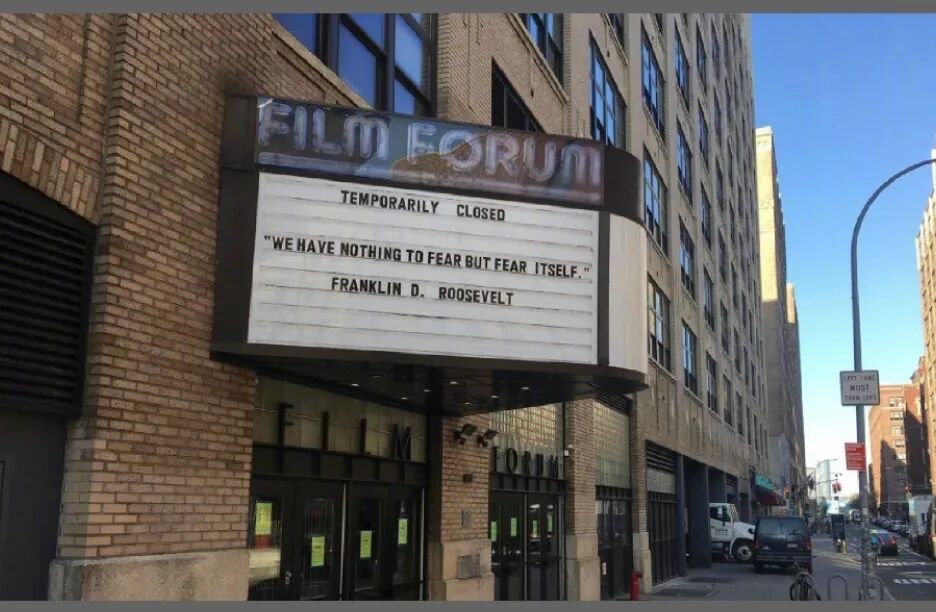 最后,位于纽约的电影论坛Film Forum是于1970年开业的一家非营利电影院,这家则引用了富兰克林·德诺拉·罗斯福总统在1933年经济大萧条时期当选总统时的演说: