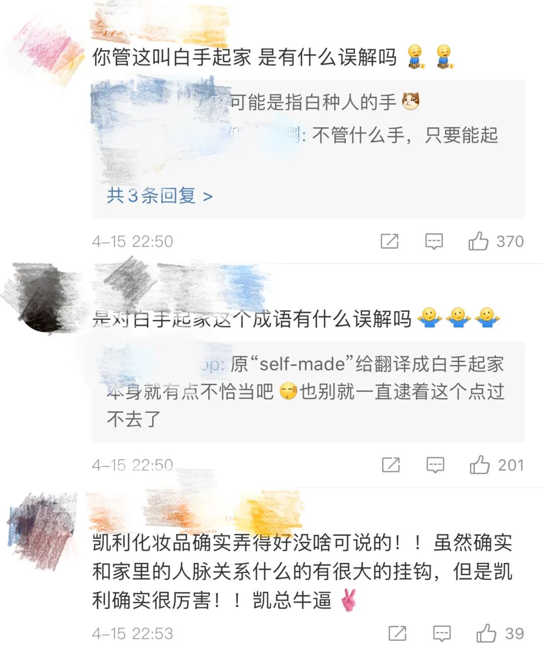 有人欢呼有人唱衰,对于凯总商业帝国的成就,“白手起家(self-made)”这个词引起了不少网友的争议。