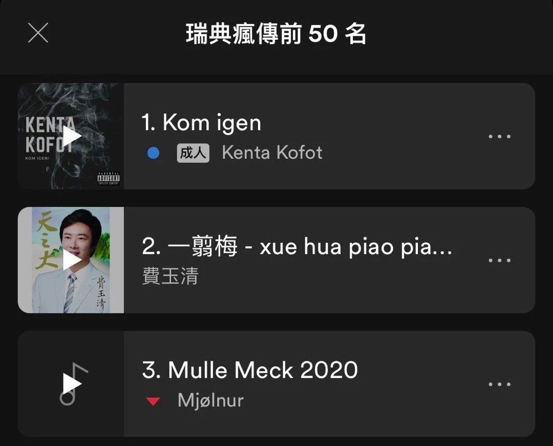 要说有多火呢?竟然登上了多个国家Spotify Viral榜单前五十,甚至位列芬兰、瑞典榜单第二,新西兰、挪威榜单第一。