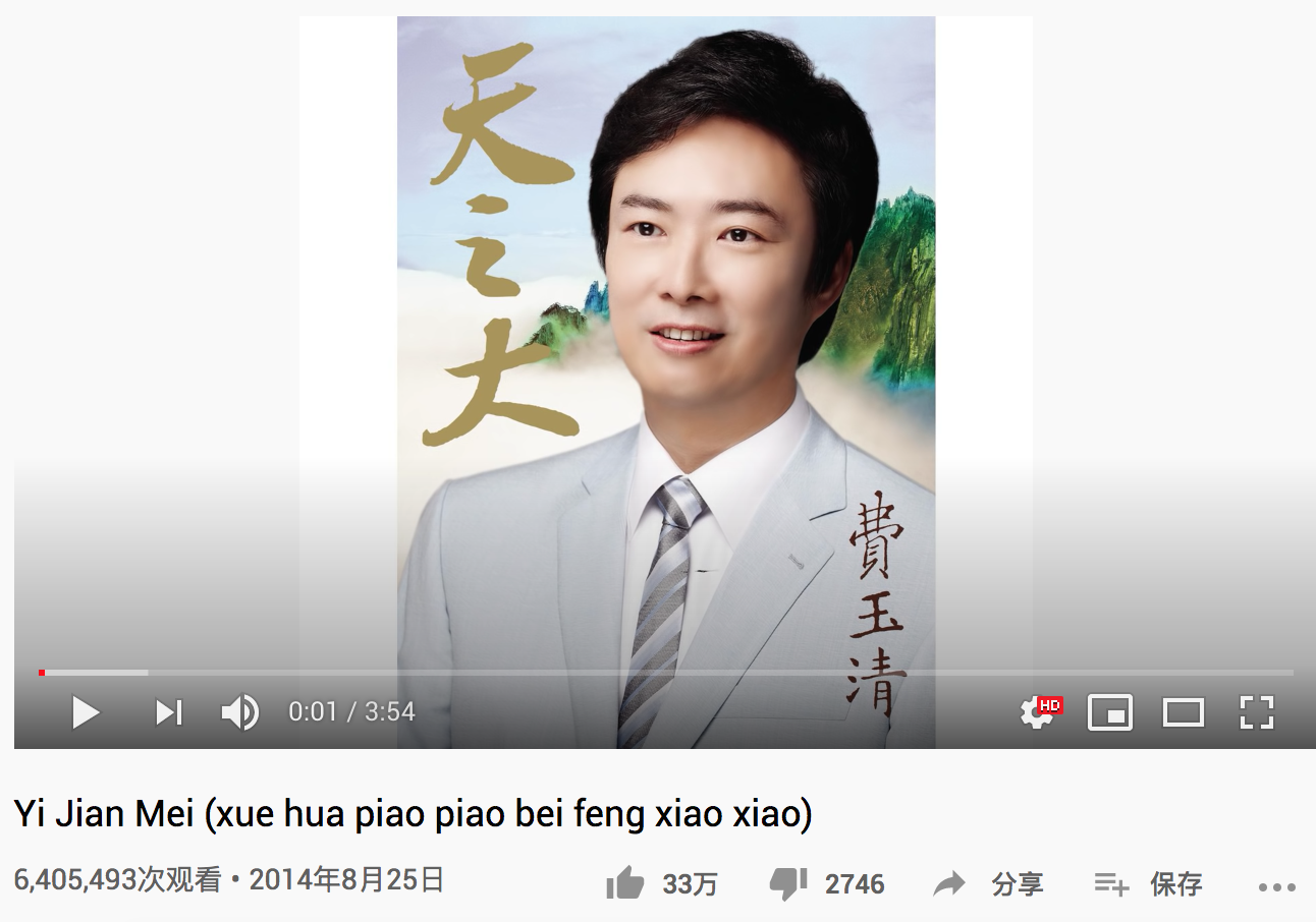 最初是国内网友恶搞《一剪梅》的视频被上传到Youtube,收获了海量观看,到目前为止已有410万次,而原版歌曲在Youtube的播放量也一跃而起达到了640万
