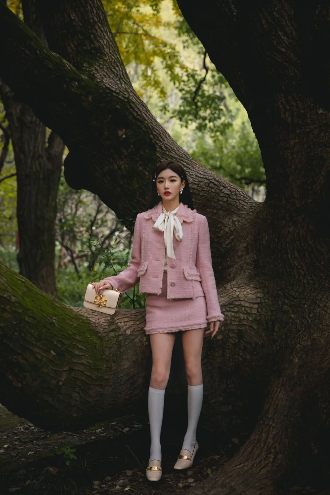 这套来自Tory Burch 2020度假系列的粉色套装Look,是雪儿当晚参加Tory Burch活动的造型,粉色尤其适合她的甜美气质。换上整套Look之后,雪儿还兴奋地跟我分享着脚上这双鞋的舒适与美貌。
