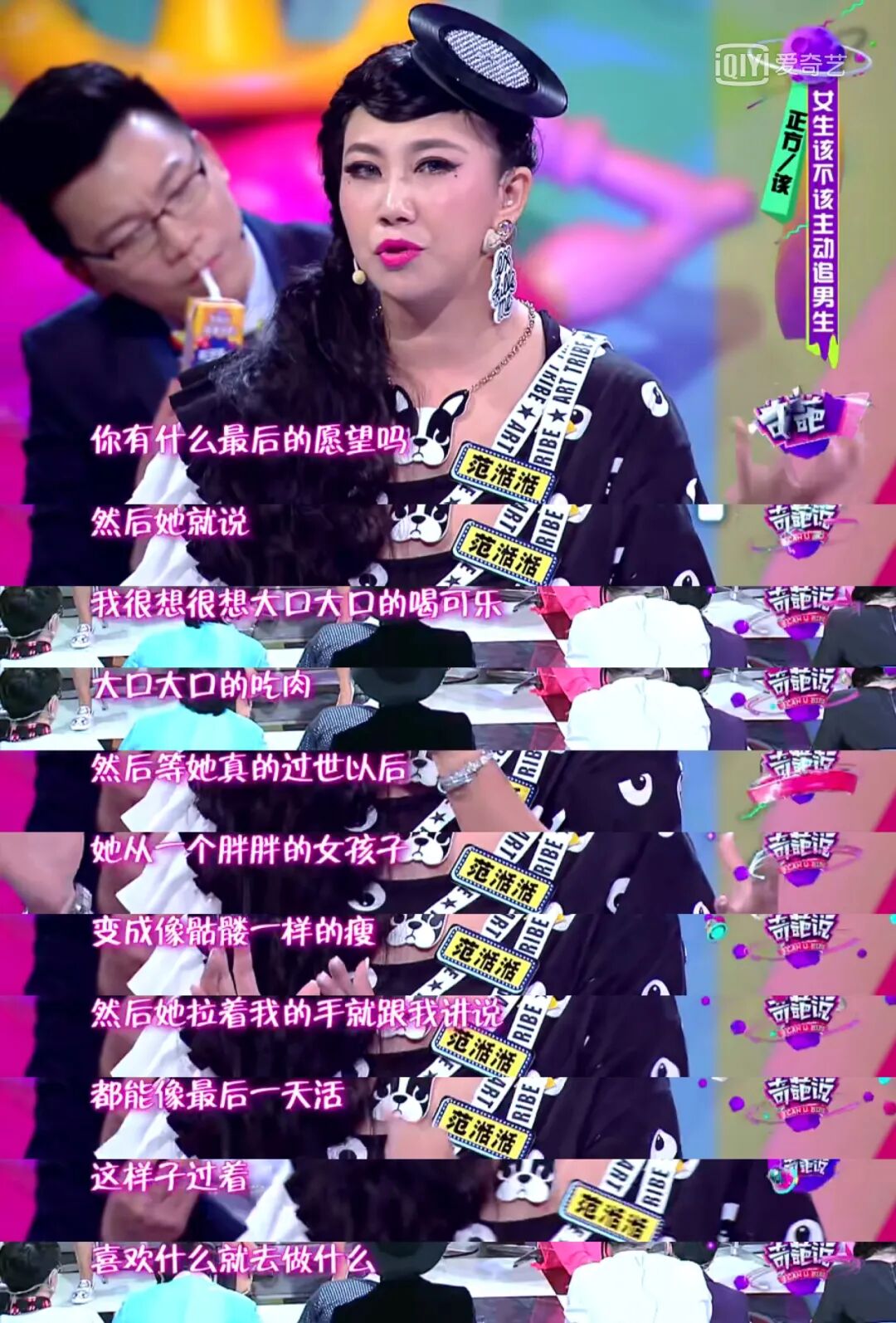 站在正方的范湉湉说到了自身的经历,从小一起长大的闺密在去世前对她说过,要把每一天都当作最后一天去活,喜欢什么就去做什么。