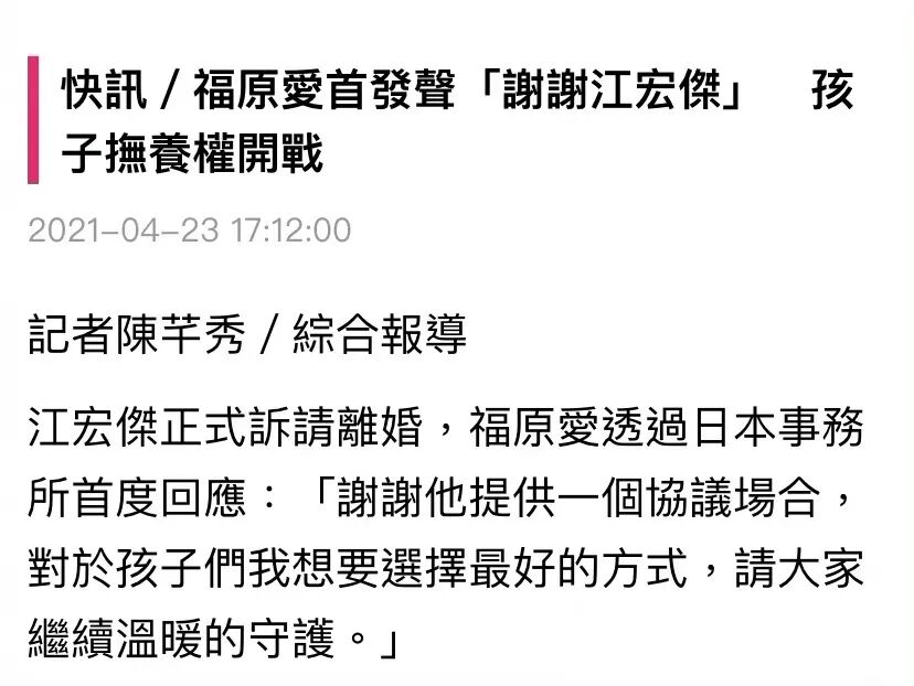 11点14分,赵丽颖、冯绍峰离婚新闻一小时后,台媒报道,江宏杰已于日前向法院提出与福原爱的离婚诉请。