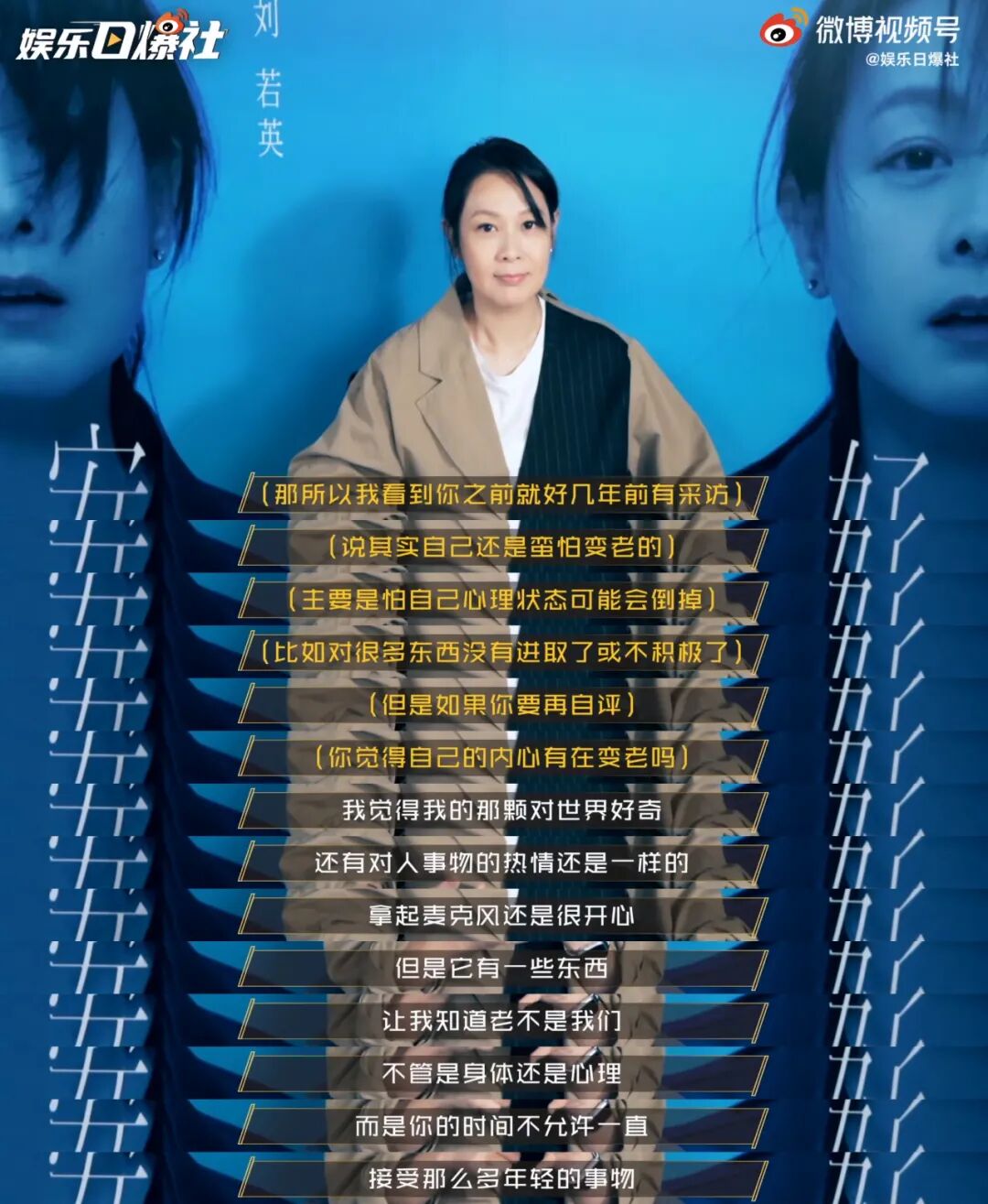多年前接受采访时,刘若英也承认害怕变老过:“因为我怕别人照顾我,除此之外,我怕失去创作力,我怕失去我的热情,我怕我心如止水。”